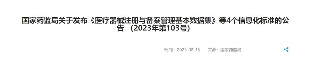 國家藥監(jiān)局關(guān)于發(fā)布《醫(yī)療器械注冊(cè)與備案管理基本數(shù)據(jù)集》等4個(gè)信息化標(biāo)準(zhǔn)的公告..